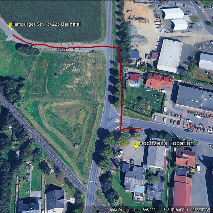 Alle die mit dem Auto direkt zur Location der freien Trauung anreisen wollen würden wir bitten in der Hamburger Str., 34225 Baunatal zu parken.